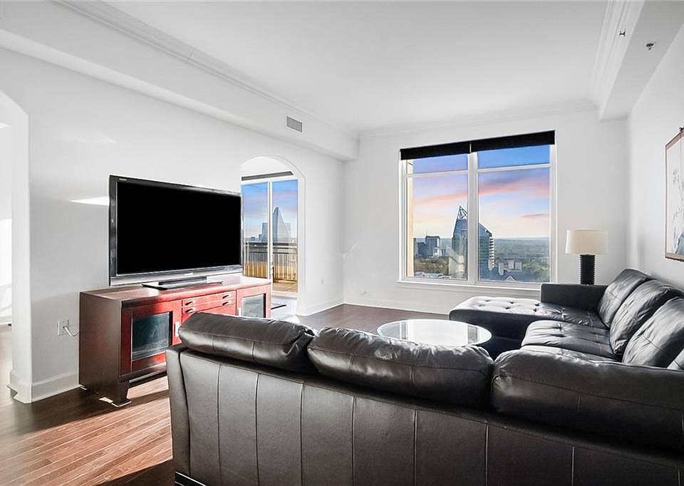 Priced to Sell! The best views of Buckhead! Sweeping unobstructed views southwest to northwest; enjoy city lights and mountain views from the 36th floor with the largest available walk out covered balcony. Rich hardwood floors, neutral paint colors, gorgeous granite in the kitchen and both baths, customized closets, electric blinds. Most sought after floor plan offering full size office or optional dining room. The large primary suite is a quiet sanctuary with a large window which also has incredible views of the city. The laundry room includes a side by side washer and dryer, included, and enough storage for all your laundry and household supply needs. This home comes with a private wine locker and two assigned underground and secure parking spaces. Both HVAC units were recently replaced. The Paramount at Buckhead is located in the heart of Buckhead, one block off of Peachtree, next to the luxurious Waldorf Astoria, Marta for quick access to go to town or the airport, walkable to the best restaurants, including NOBU, ARIA, Little Alley Steakhouse and Maggiano's, and Buckhead shopping Lenox and Phipps Malls. Paramount has world class amenities including tennis/pickleball court, heated saline pool, indoor and outdoor theatres, private cabanas, outdoor grilling areas, conference rooms, coffee bar, 2 gyms and 24/7 concierge services! The Paramount has a unique short cut behind the building allowing quick access to Lenox and I400, avoiding the busier traffic on Peachtree. Offering $1000 buyer agent bonus at closing!