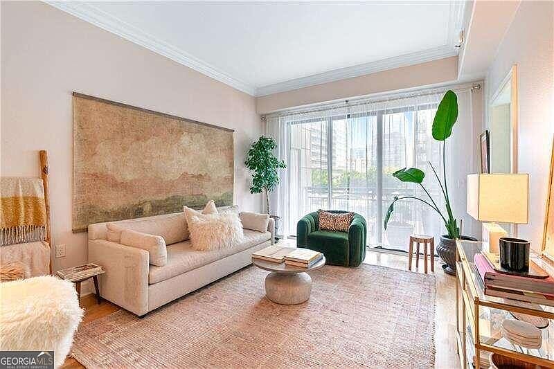 Luxury 1 bedroom and 1 bath residence in the heart of Buckhead with breathtaking views of the city. The home features oversized windows with spectacular views. This unit has an open floor plan with an updated kitchen that has quartz countertops, stainless steel appliances and stained cabinets. Hardwood floors throughout the home except in the bedroom and bathroom. Bathroom is tiled and the bedroom is carpeted. Family room is large and has glass doors leading to a balcony. Oversized owner-suite has a custom California walk-in closet and a spa bathroom. Space for washer and dryer in a secluded private closet. Not only is The Paramount at Buckhead in an awesome location with walking distance to Marta, Lenox Mall, Phipps Plaza and fine restaurants, but you will never want to leave the fabulous resort-like amenities. Amenities consist of gym, pool, tennis court, movie theatre with media library, cabanas with flat screen tv's, 24 hour concierge, valet, business center with conference rooms, gas grill and coffee bar. A jewel to call home!