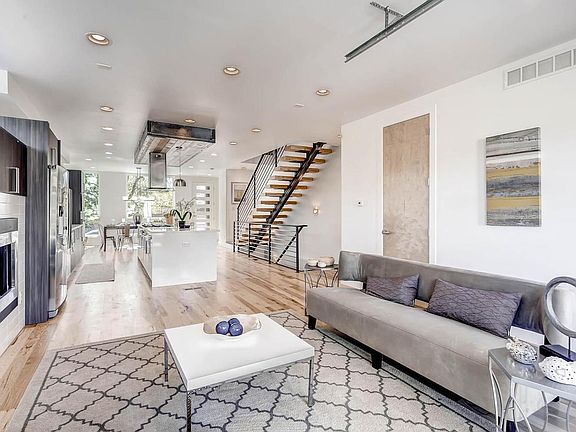 Beautiful paired townhome in Sloans! Charming exterior with amazing modern interior finishes. Gorgeous kitchen with large island and range hood accent made of steel and re-purposed beetle kill pine. Euro cabinets and solid quartz tops. Classy hickory hardwood flooring with tons of character sets the tone. Interior glass overhead garage door with auto opener for excellent indoor/outdoor entertaining options. Floating steel staircase with butcher block treads. Steel trim accents and handrails. All bathroom vanities have integrated concrete sinks and tops. Custom tile selections. Charming master bedroom with large bathroom. Dual headed shower with free standing soaking tub. Walk in closet. Third floor flex space features a wet bar and access to roof top deck with BBQ stub out. Fully finished basement with large bonus room, two bedrooms, and a full bath. 2 car detached garage. Estimated project completion in 60-90 days. Pictures are of similar building with similar finishes.