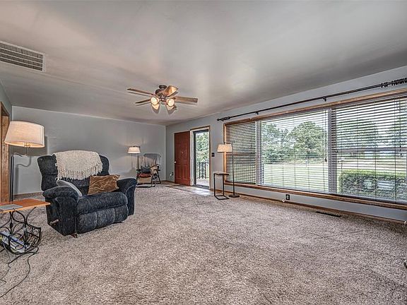 Don't miss out on this breathtaking view! Nestled on nearly 20 acres of gorgeous farmland, this 3-bedroom, 2-bathroom home is a homesteader's dream. With ample farmland for cattle or other livestock, a time-tested garden space, and a stocked pond, it's perfect for country living. The house features a charming wood-burning fireplace, expansive windows to take in the scenery, a tastefully remodeled bathroom, and a spacious mudroom. All on one level, except for the stepdown, generously sized primary bedroom. The large 3-car carport provides cover for vehicles or a fantastic spot for outdoor cooking and gatherings. Additionally, there's an easily accessible in-ground storm shelter. A workshop with power supply is a welcome extra. The property's curb appeal is remarkable with its array of stunning flowers and shrubs. Pictures can't capture its full beauty – it's a must-see in person! Once you visit, you may never want to leave.