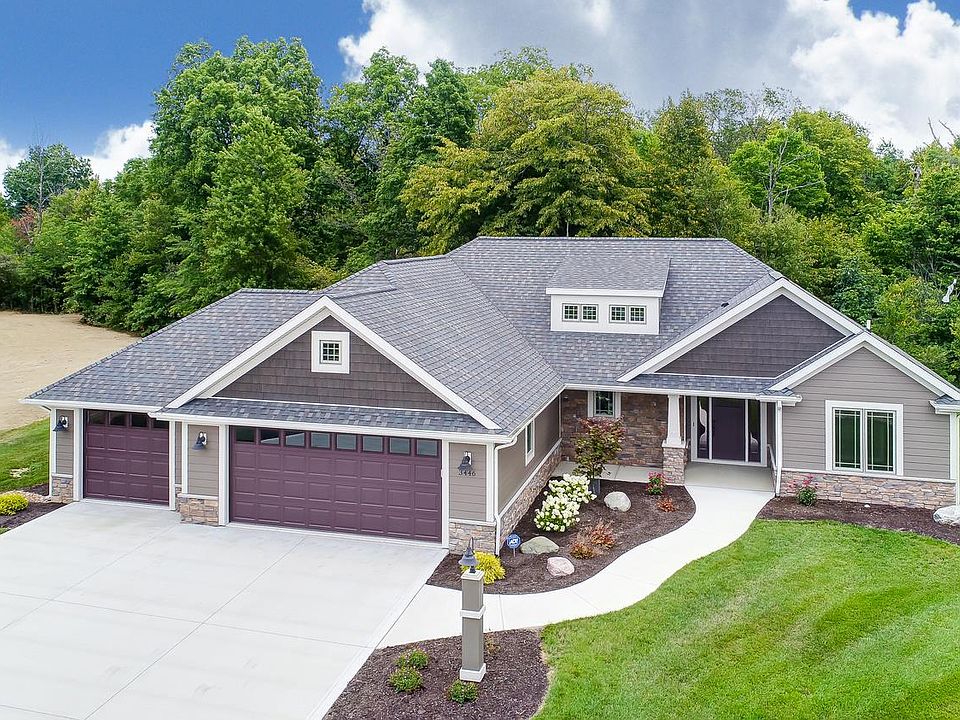 Absolutely stunning villa in Buckners Crossing. This Custom Quality built home has everything you are looking for starting with fantastic curb appeal! Features include 11 foot great room, beautiful kitchen with quartz counters, a large and bright sun room looking over the wooded lot, and plenty of space in the large 3 car garage. The home was built using spray foam and bat insulation on all exterior walls. It is wired for security and has surround sound. The yard is maintained by the association and has irrigation! No worries in the winter since your snow will be removed for you! The master bedroom is large with a spa like bathroom boasting a custom tile shower, large tub, and walk in closet. The hard wood floors are beautiful and the craftsmanship that went into building this home is outstanding. The cul-de-sac lot and tree line all provide privacy. Come and see this home and make it yours today!