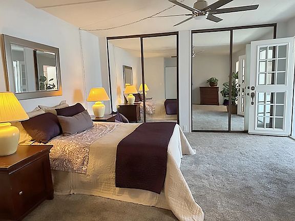 Price reduction. YOU OWN THE LAND - no space rent. This is one of the largest homes in the community. The living room has a vaulted ceiling and gas fireplace. Two Primary bedroom suites - each with full bathroom and den/sitting room. Home has solar panels, tankless water heater, water filter for kitchen sink, instant hot water in Primary bathroom, newer A/C unit and Circuit Breaker Box with ample room for expansion, Ring doorbell. The interior of the home needs some updating but this home could really be a WOW home. You must see this home and community. Located 3 houses down from the Clubhouse and other community amenities. If you are over 55 years of age - come check out this private Resort Style community of 504 detached homes on over 100 Acres of LAND THAT YOU OWN! Only minutes from world class beaches, Carlsbad Village, shopping, fine dining, renowned medical hospitals and clinics. Why would you go to a Condominium or Townhome - when you could be in a detached single family home - a community with over 40 clubs. Amenities and activities galore. Golf cart available and sold separately.