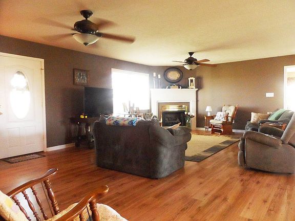 4 Bedrooms ~ 3 Full baths ~ 30'x40' detached concrete block shop with concrete floor. Additional 1,000 sq. Ft. Unfinished on the second floor. A beautiful gabled roof covered 24'x8' Concrete front porch with 4 columns, leads to the glass front door that enters into the 32'x28' Family room kitchen and eating area all one room. There is a Corner fireplace and double windows looking over the front lawn. Solid wood hickory cabinets. Refrigerator, range, .......