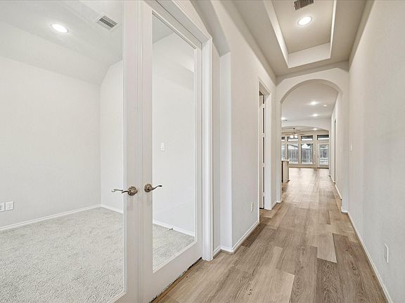 This Perry home impresses w/its smart layout, quality finishes & easy everyday flow. Enjoy stunning engineered wood flooring, soft neutral finishes & an open, inviting layout w/a designated study & open spacious living & dining areas. A chef-inspired kitchen offers a contrasting island & separate bar, quartz countertops, designer tile backsplash, sleek SS appliances & a large walk-in pantry. Posh owner’s retreat offers a spa-inspired ensuite w/dual sinks & a walk-in shower + a custom walk-in closet. Roomy guest bedrooms have walk-in closets & easy access to a stylish full bathroom. Screened back porch is ideal for bug-free relaxation, overlooking a fenced backyard w/a sprinkler system & raised garden bed. Energy-efficient $30K solar panels included, all-brick construction, alarm, washer, dryer, fridge & 240V EV/Tesla Outlet. Harvest Green offers resort-style amenities, a community farm, farmers market & the popular Messina Hof Winery & Kitchen woven into everyday living.