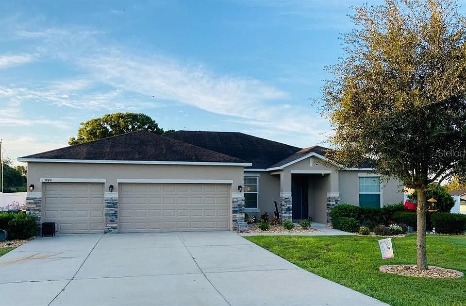 Welcome Home! This beautiful Custom Built 4 bedroom 2 bath home with a 3 car garage sits on just over 1/2 acre. Located in an established North Lakeland neighborhood on a cul-de-sac. This spacious open floor plan is perfect for entertaining and family gatherings. The large kitchen has granite counter tops and SS appliances and 36" Sinclair Birch cabinets with a spacious eat in dining area. The kitchen opens up to the Great room and family dining room that features arched walls and wood finishes. Across from the dining room is the Den/Study perfect for an office or entertainment area. The large MB and bath has 2 walk in closets and a garden tub, separate shower and double sinks. The covered patio opens up to large back yard with vinyl fence. Lots of room for a pool and outdoor oasis. There is a new 10x20 shed that conveys with the property. New exterior paint. Schedule a showing today!