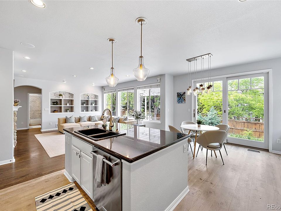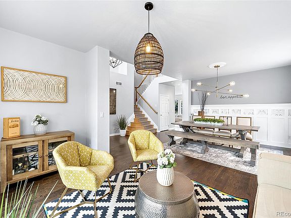 Welcome to desirable Highlands Ranch Golf Club community! Steps from Highline Canal, Redstone Park, Town Center shopping and easy access to Highway 470 and Santa Fe, this home is situated in an ideal location. This beautifully updated home boasts gourmet kitchen, main floor office/bedroom, updated master suite and professionally landscaped yard. A grand 2-story foyer welcomes you into a spacious dining and sitting area. The open kitchen/living space features granite countertops, stainless steel appliances, huge windows and a sliding door leading to your oversized patio with abundant room for cooking and entertaining. The main floor also features a bedroom that can be used as an office, a full bathroom and laundry room. Upstairs you will find hardwoods throughout except in the freshly revamped play/entertaining loft. The large master bedroom was recently painted, and boasts desirable his/her walk-in closets. The primary bath has been upgraded with new quartz countertops and plumbing fixtures. There are 2 additional spacious bedrooms upstairs along with a jack and jill bath. The unfinished basement leaves opportunity for you to make your signature touches to round out this move-in ready home. Other bonuses include designer light fixtures, NEST thermostat and Yale Smart lock, finished 3-car tandem garage with work-bench and storage and a well loved and tended garden. With top-rated schools, plethora of trails and parks and access to 4 HRCA rec centers this home truly has it all.