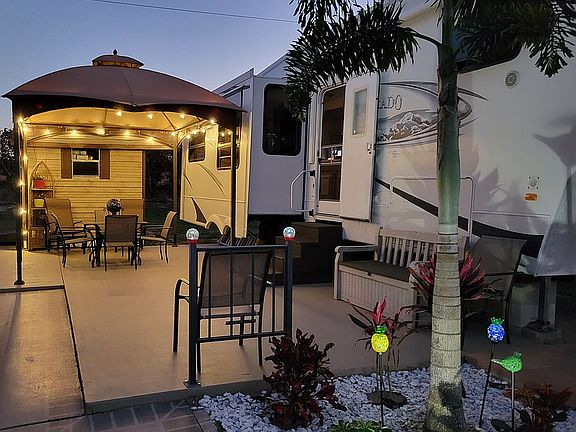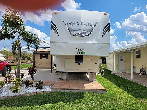 JUST REDUCED!!!!! Dutchmen Colorado 34MS (38 feet long). Trailer has a clear title, and I have title in hand. Has 3 slide outs that really make it roomy inside. When the 2 main slides are out, the width of kitchen and living room is 13 FEET wide. Currently, the trailer is on a RV Lot at Reflections on Silver Lakes, Avon Park. Great lot with storage/storm shed and gazebo (included in price). The shed is storm rated and can provide shelter during any hurricane. The shelter is certified and rated for 180 mph winds (see pics). It is a great RV lot. It is wide and deep and has room for a boat, car and gazebo (as pictures indicate) with plenty of more room. Best part, a nice backyard that backs onto an Orchard, which means you have no backyard neighbours. You will not find a nicer/cleaner/nonsmoking/no pets trailer than this one. We are a nonsmoking couple and never had pets in it. Previous couple never had pets and were nonsmokers too. ALSO, EVERTHING IN THE TRAILER AND SHED IS INCLUDED IN PRICE!!! Just bring your toothbrush and your good to go…... Everything in the trailer is functional, working with no leaks; -Fridge/Freezer is cold and stays at desired temperature -Hot water tank was just flushed and anode changed -Roof was just cleaned and sealed. -Trailer has no leaks and no water damage -Landing gear is functional and operates as it should -Roof was just urethane about 6 months ago and still looks great -Washer and dryer works as it should -Stove and microwave work as they should -New double recliners that are big and comfy Would like to sell as a package deal, and you will not regret doing that, because the park is great, with two pools, whirlpool, pickleball, tennis, and most important - some VERY NICE FOLKS/NEIGHOURS! The selling price is $24,900 USD. If you are Canadian, I can work with CDN at the exchange rate posted and do a Canadian bank transfer to make it easier. No low ballers, TY. Rent is $600/month, and no HOA. Includes all park amenities (tennis, pickleball, 2 pools, hot tub, etc), garbage pickup, water, sewer, taxes etc. The only bill you have is electricity. IF THE AD IS UP, IT IS AVAILABLE!!!!!!
