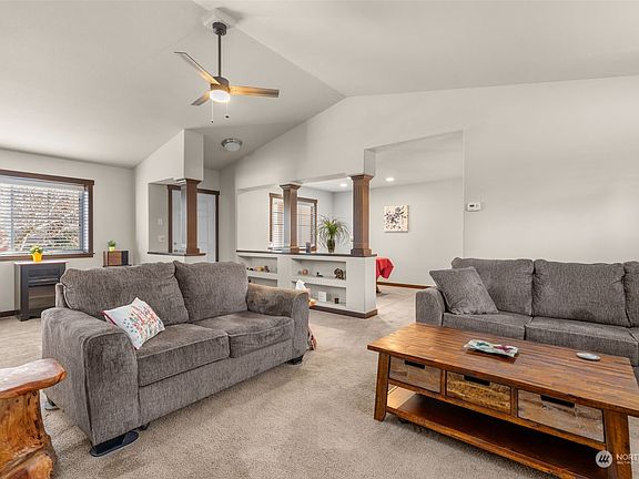Beautiful 3 bedroom Rambler located in Digby Heights! Kitchen boasts Granite countertop with breakfast bar/seating, custom Hemlock Hardwood Floors, earth tone colors throughout, custom maple cabinets. Ample cupboard space, ss appliances. You'll love the vaulted ceilings and built in shelving in entry way. Large Primary Bedroom/walk in closet, with a peek a view of Anacortes. Separate utility room with shelving and folding table. Double car garage, with storage. Covered front porch. Fully fenced back yard, with garden beds. Corner lot. Easy access to freeway and shopping. Welcome Home!
