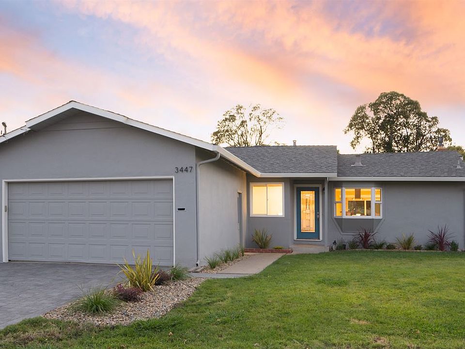 Living in this beautifully updated and meticulously maintained 3-bed, 2-bath ranch-style Concord home near BART, schools, and freeways will be a piece of cake! Your sweet life starts when you walk through the front door into the remodeled living room, which flows into the open kitchen with a gorgeous granite countertop island, breakfast bar, and sunny window seat for relaxing. Fav features: hardwood floors throughout, gas fireplace, small bar, freshly carpeted bedrooms, and primary suite bathroom with stylish tiles, vessel sink, glass-enclosed shower. Sliding glass doors open to a cheery and spacious backyard designed for convenience. Host a summer garden party on the spacious patio of stone pavers and admire your easy-living evergreen turf lawn. Fall in love with the welcoming Olivera neighborhood! Rare find, only having two previous owners. Current owners diligently cared for it, so this home is move-in ready! Dining room can be converted into 4th bedroom. View 3D tour online.