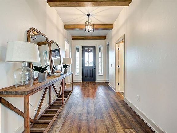 The Charleston Estate in Brentwood resides within the esteemed Norman School District and occupies a generous 0.93 acre lot. This home boasts an inviting covered front porch, a 3-car garage, and a beautiful farmhouse exterior. The living room is the highlight of the home with its beautiful vaulted ceiling and gas fireplace. Providing a great entertaining space, the kitchen has a large island with quartz countertops, pull outs and a massive pantry. The dining room which is partially closed off has ample space for a large dining room table set, natural light from a large window and access to the covered back patio. The primary suite is an inviting retreat tucked away in the far corner of the home and even has its own back patio. The luxurious bath features a 6ft tub, walk-in shower with Schluter waterproofing, extra storage cabinets and a spacious walk-in closet. Off of the living room are two bedrooms that share a Jack and Jill bath. Close to the entry of the home is a 4th bedroom that has its own bathroom, making it great for guests. Upstairs, is a large flex room with another full bath and closet that could serve well as a game room. Downstairs, the laundry room has extra storage cabinets and a mud bench. Some other features include a smart system, a healthy air filtration system, a tankless water heater, a sprinkler system, and storm shelter. This Zero Energy Ready Home is unrivaled among other energy-efficient homes with its superior design and construction. Adhering to the highest standards for energy efficiency, comfort, and air quality, it promises long-term savings. Some innovations include a thermal enclosure, water and moisture barrier, ENERGY STAR® appliances, high-performance windows, a perfectly sized HVAC system, and so much more. The Brentwood community stands out with its larger lots, easy access to OKC, and a future pool and clubhouse that will be built.