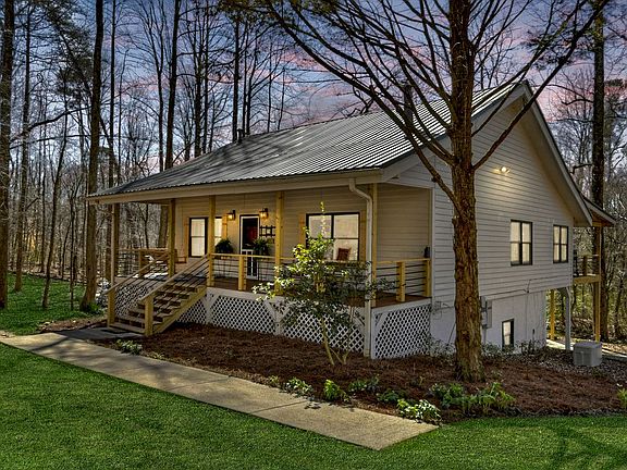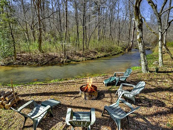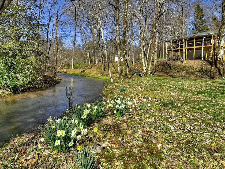 Rare Find! Park-like setting with spectacular CREEK frontage, 6.49 ACRES, owning both sides of the creek, w/seasonal mountain VIEW! Recently RENOVATED home features 4BR/3BA (2 BR's on main), beautiful open great room w/soaring wood ceilings, exposed beams, NEW floor-to-ceiling fireplace, gourmet kitchen, lg island, dining room w/pass thru & a sunroom/keeping room. Finished basement has a den, game area, bedroom, bath & built-in bunks. The outdoor living is WOW with a creekside pavilion, firepit area, oversized covered porch, luxury hot tub & huge patio overlooking the rushing waters of Boardtown Creek. Ladies will love the She Shed. (Fiber Internet & Generator) Long list of recent improvements with new, new, new! Great location between Ellijay & Blue Ridge, all paved roads, easy access, gated driveway. Your opportunity to own a piece of paradise. No HOA; Yes, STR's allowed.