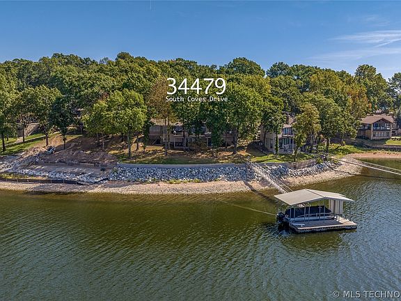 With a gentle slope to the water, two lake facing decks, a sunroom, your personal 30' dock, wet bar, and plenty of room for family & friends, this home checks all of the boxes for the perfect lakefront home! This home comfortably sleeps 17! The two bedrooms upstairs have king sized beds. Also upstairs is a heated/cooled sunroom with a full and twin bunk. The downstairs living room has two queen Murphy beds and a bedroom with king size bed and twin bunk. The two story home also features two wood burning fireplaces, two living areas, and large laundry room. The Coves is a peaceful, gated community with 24/7 manned security, an 18-hole championship golf course, swimming pool, tennis courts, a community dock, and much more for both the young and the young at heart!