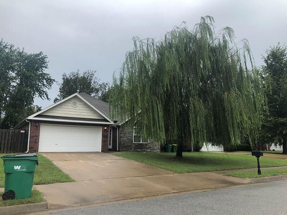 Lovely 3 Bedroom, 2 bath single family home off Don Tyson Blvd in Springdale. This 1,467 square feet home has an open floor plan. The large living room has a cozy gas fireplace. The kitcehen has all appliances, lots of cabinets & drawers, a pantry and an eat-in kitchen that overlooks the sliding glass patio door that leads to the privacy fenced yard. The master bath has a huge walk-in closet, a double vanity sink, a jetted tub and a separate shower. Hall bath as a shower/tub combo. Subdivision is walking distance to schools, Lake Fayetteville and the Razorback Regional Greenway Trail system. Seller is offering a $1500 painting allowance at closing.