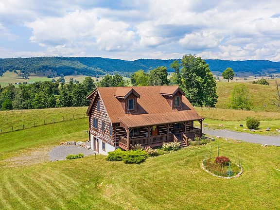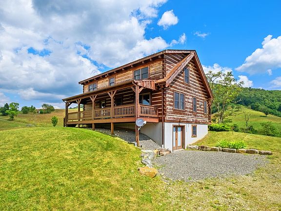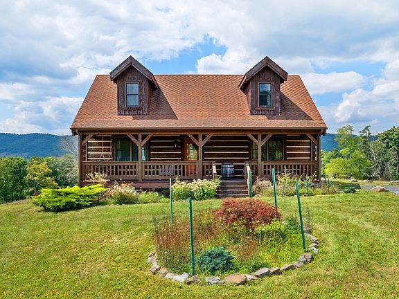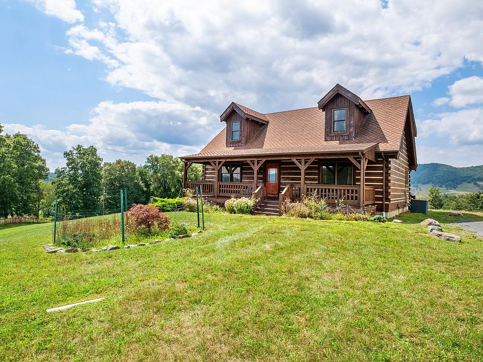 Charming log home situated on 4 acres with 360 degree views, including Vanderpool gap, Mill Gap Valley, and Blue Grass Valley. Tastefully designed with hardwood flooring, granite counter tops, and full front and back porches for enjoying the mountain breezes and the breathtaking views. Central heating and air will keep you comfortable in all seasons. Fruit trees line the drive coming into the house with a nice open yard. One car garage with gravel floor and electricity run to it. Gas log fireplace in the living room completes the cozy feel of the cabin. Large home studio in the partially finished basement. Don't miss out on this special property.