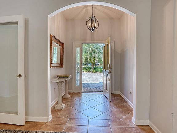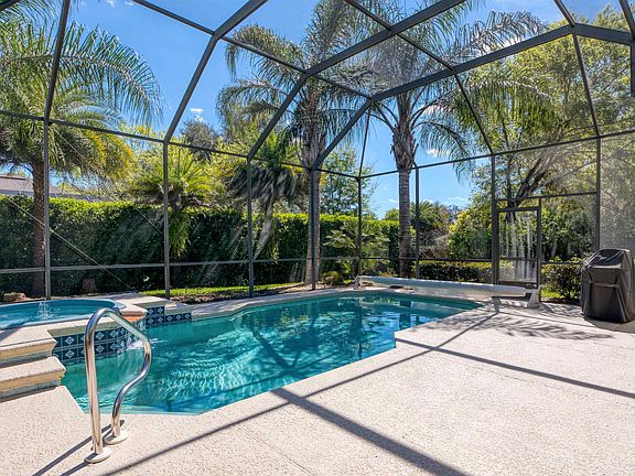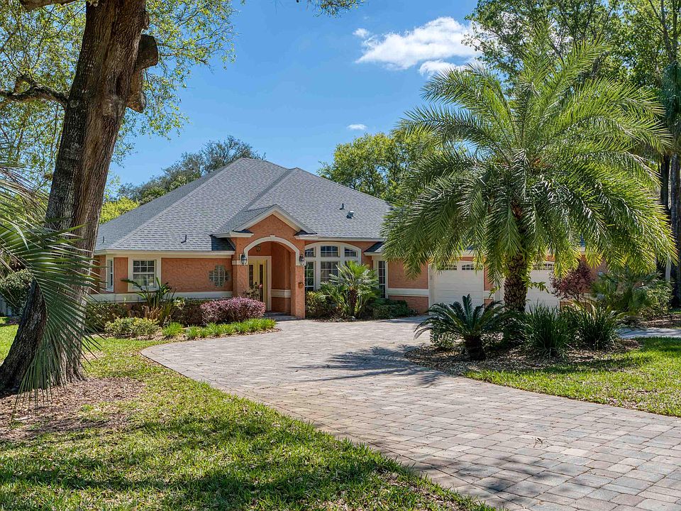 Gorgeous pool home on half-acre lot in Oakbrook. This spacious home has been lovingly maintained and is truly move-in ready. Take in the serenity sitting on your back lanai, lounging by your heated pool, or soaking in the hot tub. Lush landscaping is designed for ultimate privacy in your backyard including a little citrus tree orchard that includes blood orange, lemon, grapefruit, lime, and Myer lemon. Open design in the living area, with very separate spaces for two separate guest bedroom wings, a den/library/office, and an owner's retreat wing all very private. Cook's kitchen with gas stove top, double ovens, lots of storage and granite counters open to the family room with views of the back yard paradise. Spacious formal dining and den/library/office at the front of the home with French door entry and built in bookshelves. Owner's retreat set to the side with updated ensuite bath that has three separate closets, a linen closet, separate vanities and doorless shower. Bright guest bedroom to the back of the home near bath with doorless shower and additional two bedrooms with shared bath in separate wing. Long laundry/utility room has laundry, sink, storage and more. Extra space in garage for storage. So much more to this home with paver, circular drive entrance, tankless hot water heater, newer roof. The half-acre, beautifully landscaped homesite provides space that few subdivisions do and includes amenities such as the clubhouse, community pool, tennis courts and playgrounds. Lovely neighborhood for walking and biking that is just a short drive from shopping, Historic Downtown St. Augustine or the beach. You will want to call this home.