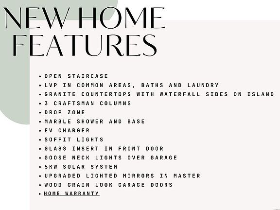 Amazing 5 bed, 3 bath ranch home with service door, cedar columns, finished garage, EV car charger, 12' sliding door, marble shower, dual shower head, crown molding, jacuzzi tub, 42" soft close cabinets, tray ceiling, heated floors in master, 3 car garage, and so much more!