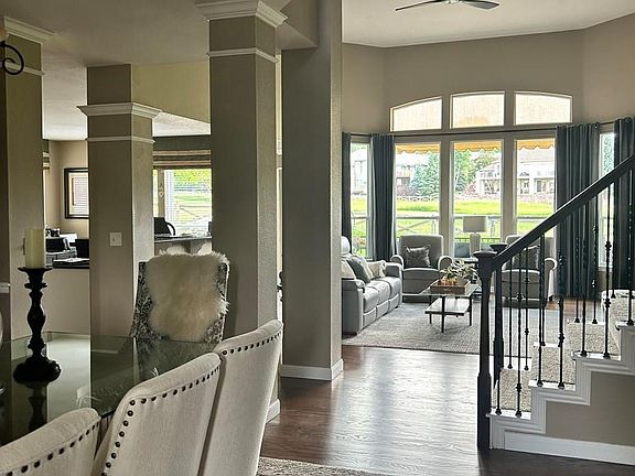 - Description: Spacious Dining Room With Stylish Chandelier