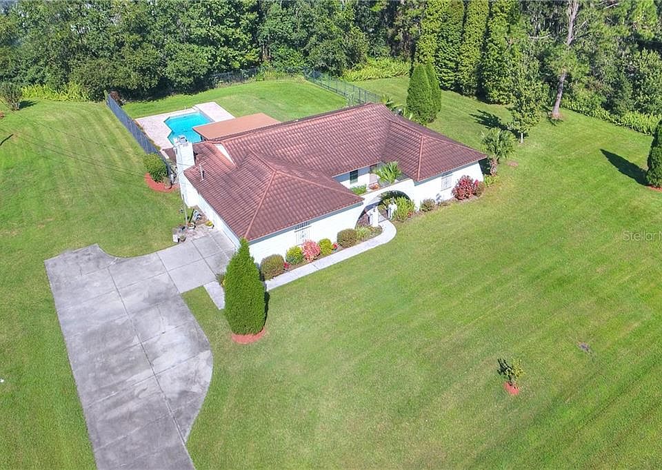 Don't miss this 3/2 POOL home set on one acre in Oak View Estates a conveniently located community with no deed restrictions! The traditional floor plan features formal living and dining rooms plus a spacious family room with wood burning fireplace that is open to the kitchen. A large screened porch and pool with paver deck overlook the fenced backyard. The irregular shaped pool is approximately 30x14 and the deep end is 8 feet. Many components of the house have been replaced. The roof is metal with a ceramic coating - 13 years old with a 40 year warranty. New heat pump is about 7 years old and the septic and drain field was replaced in 2016. The vinyl window are high impact dual pane insulated windows with low e glass and they tilt in for easy cleaning. Custom wood shutters are in the living room and family room. A side entry double car garage completes the picture. This is a great place to call HOME!!