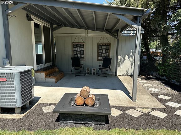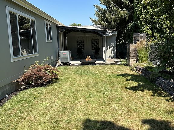 Adorable 3 bedroom plus an office, 2 bathroom home in Odell Mobile Park. Large kitchen with eat at bar, bar stools stay, appliances stay. Primary bedroom with w/I closet, bathroom with dbl. sinks, sunken tub, and shower. Utility room with W/D included, built in cabinets. Bonus entry room from parking with sliding glass door to adorable covered back patio with fire pit included, yard and privacy. 10X16 workshop with power. New roof June 2024. Space rent is $740.00 a month which includes Irrigation yard water, sewer and garbage.