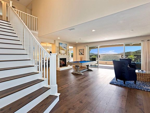 **Spectacular Highly Upgraded La Costa Oaks Home with Mountain Views** This newly renovated home is located on a very private 10 home cul-de-sac at the top of the neighborhood. This Copperwood plan 2 offers large open floor plan living, beautiful wide-plank hardwood floors, dedicate office/5th bedroom, bonus loft, downstairs guest suite, professional custom chefs kitchen open to family room. Large expansive glass sliders lead out to covered patio living space. Oversized primary suite with spa inspired bath and walk in closets. Private back yard with BBQ island, fire pit and new oversized spa/spool with expansive mountain views. Whole home water filter, OWNED SOLAR! Great Neighborhood! Low HOA! ENCINITAS SCHOOLS!!.