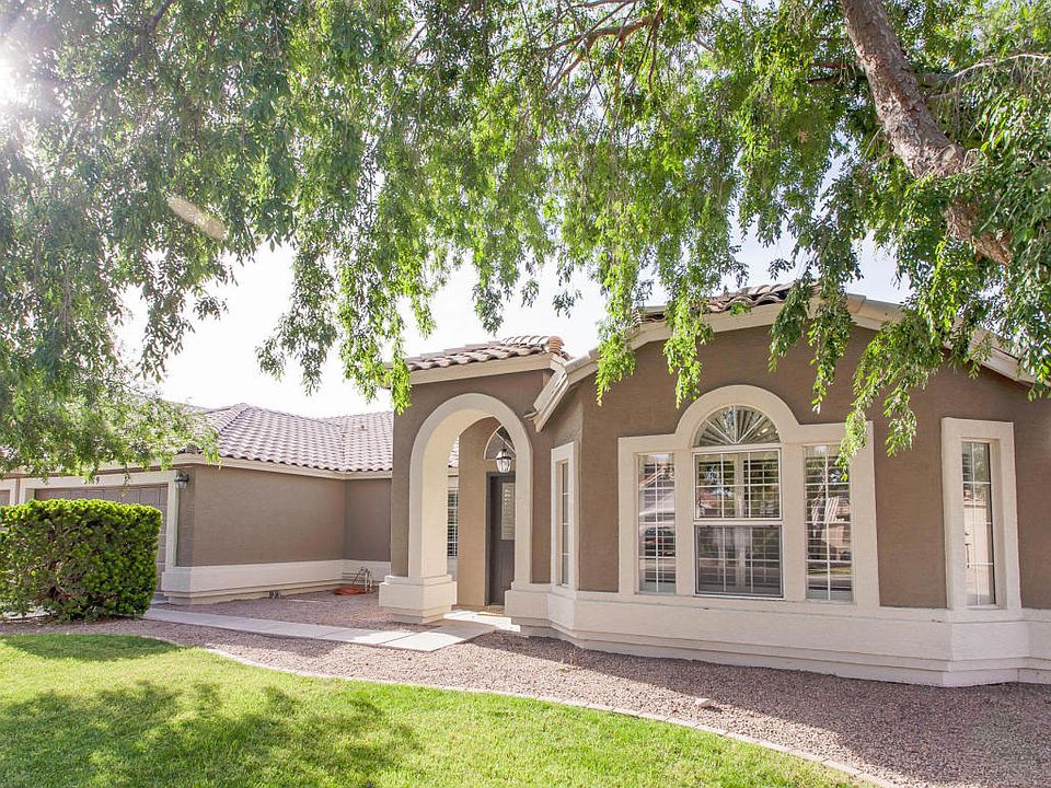 Move right into updated Mtn View school district 4Bedrm w/den single level home. Freshly painted corner lot home in quiet upscale neighborhood. Plantation shutters & vaulted ceilings give elegant first impression as fresh paint colors offer warmth. You'll love designer finishes like highly upgraded carpet 2014 & 24'' tile bordered by 8'' baseboards. Entertainers dream vaulted Chef's kitchen w/granite, gas range, stainless appliances, pantry, cherry cabs. Bay windowed breakfast nook opens to hardwood floor Family Rm w/Fr Dr to backyd. Love your daily routine in spacious master w/granite counters w/sitting area, 24'' tiled walk-in shower, huge closet & updated lt & plumbing fixtures. Skylights, quality fans, window treatments tie together interior design. See Private Rmks for features/disc