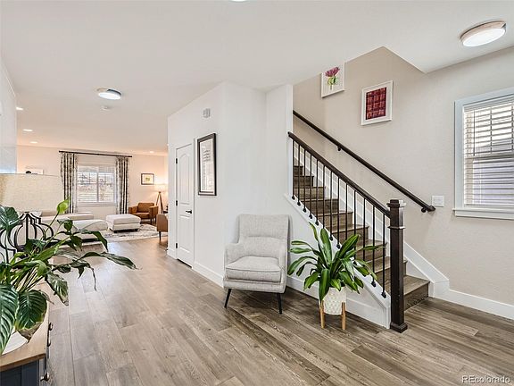 Former model home that is move-in ready! From the floor to ceiling shiplap entryway, to the tiled kitchen walls and Farmhouse style kitchen sink, this home has it all. The main level has an open concept with a large living room, eat-in kitchen, relaxing sunroom and 1/2 bath. The kitchen is a chef's dream with white engineered cabinets, quartz countertops, gas range, and a pantry. Step outside to the covered patio and enjoy mountain views while you BBQ! Engineered wood flooring throughout the entire first floor, stairs and upstairs loft, open railing, upgraded lighting fixtures and hardware throughout. Upstairs the primary suite has judges paneling, upgraded quartz counters, frameless/euro shower door and wall tile. Three other bedrooms share a full bathroom with double sinks. Located in a peaceful cul-de-sac with no neighbors behind the home! Grab a hot cocoa and watch the Castle Rock star lighting and fireworks from the front porch! Short walk to parks, trails, schools, and local shops. You won't lift a finger after move in day, stop by before it's gone.