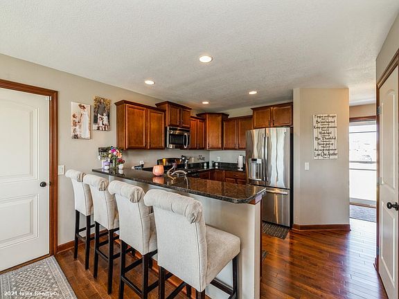 Waukee schools Clive 4 BR on cul de sac, walking distance to Canary Park Large backyard plus spacious deck to entertain Open living area gas fireplace, dining area & kitchen dark cabinets & granite All kitchen app. stay too Need a home office? Great space french doors perfect for office, den - U choose 3 Beds up, owners suite walk in shower, double sinks & walk in closet. Finished LL has great living room, 4th BR, bath & lots of daylight. Don't miss this one