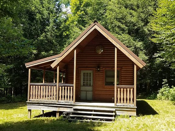 Beautiful cabin on 10 wooded and secluded acres on a seasonal road with a meandering stream that borders the property. Great for a family get away or a hunting camp. Cabin is wired for a generator. 1 bedroom plus loft sleeps 4 comfortably. Indoor composting toilet. Outdoor shower or wash up in bathroom sink. Wood stove with electric blower is more than enough to handle the cold. This Conestoga Log cabin is well insulated with double-insulated roof and floor as well as a metal roof. 2 skylights, ceiling fan, 6 foot wide side porch. 12 x 18 foot shed with an attached 11ft carport. Roughing it has never been this nice! If you are seeking that ideal getaway site, this property is a must see.