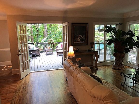 Fall in love with this charming, completely remodeled home w/ MASTER ON MAIN. 5 bed, 5 bath home boasts lavish features: Chef's Kitchen, SS appliances, wine cooler, gorgeous granite, Carrara marble subway tile backsplash & richly stained maple cabinets. Hardwoods on MAIN. Master bath has hint of glam with Jacuzzi garden tub, open shower & multiple sprays, waterfall mosaics, granite counter & double vessel sinks. Spacious 715 sf wraparound deck has treehouse feel. Finished walkout basement has in-law/teenager suite, full bath, office space & wet bar. Play or âforest batheâ in your backyard with NEW garden steps to gently sloping & flat areas for outdoor dining & relaxing on a bench next to the little winding creek.