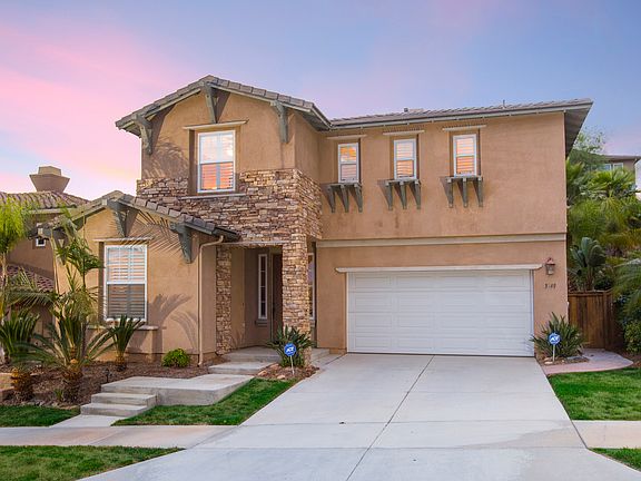 Welcome home to Calavera Hills! Bright, open floorplan with high ceilings featuring a main floor bedroom and full bath. Open & upgraded kitchen with breakfast nook, large island, open to family room with fire place- perfect for entertaining. New, custom lighting throughout home. Large master with dual walk-in closets and brand new shower. Private & quiet entertainer’s yard with 10 person Jacuzzi, gas fire pit, & built-in BBQ area with refrigerator & new palapa.