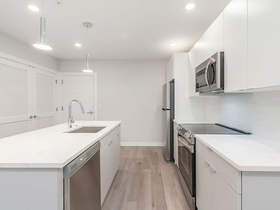 This brand-new construction features spacious one- and two-bedroom residences designed with contemporary elegance in mind. Each apartment showcases high-end finishes, including stainless steel appliances, quartz countertops, and hardwood floors throughout. Central air conditioning ensures year-round comfort, while full-sized in-unit washers and dryers add everyday convenience. Select units also offer private outdoor spaces, perfect for unwinding or entertaining.
