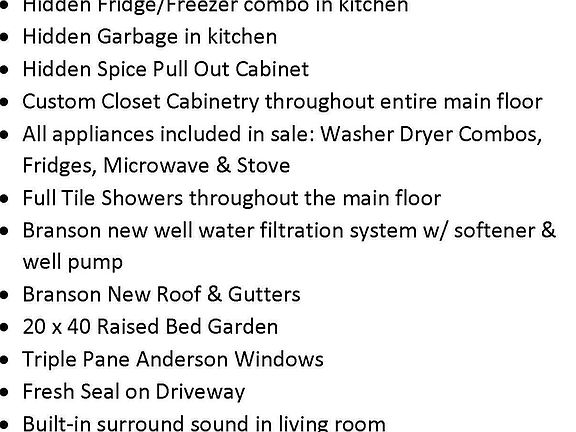 - Included: Propane Cooktop, Dishwasher, Disposal, Dryer, Ice Maker, Microwave, Refrigerator, Wall Oven - Propane, Washer, Water Softener Owned