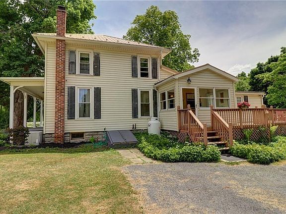 This 3 bedroom, 2.5 bath home is set up perfectly for a home business or in-law suite with a separate entrance and private bath or it could also be used as a first-floor master bedroom suite. The inside also features a butler pantry, lots of built-ins, formal dining room, propane fireplace, and hardwood floors. Outside you'll find a large private deck and back yard, paved driveway, established gardens, and a large two-story pole barn. Union springs schools, and public lake access just a short walk away. Easy commute to Auburn, Seneca Falls, or Ithaca. Check this one out today!