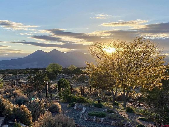 Stunning views of the West Elks, Needlerock, the Ragged Mountains, Mendicant Ridge and Grand Mesa from this solidly built 4500 square foot home. You will never want to leave this oasis! Custom built 2 level contemporary home boasts lots of space for guests, entertaining, hobbies, crafts and quiet spaces. Gourmet eat-in kitchen has an abundance of cabinets, island with breakfast bar, built-in spice cabinet, large work counter, gas cooktop and all of the other appliances you need. The double-sided, rock-faced gas fireplace in the living room and kitchen provides warmth and ambiance on winter days. The living room, kitchen, dining area, main deck and master bah have built in speakers providing music of choice throughout most of the house. The large living room offers plenty of space for both conversation and quiet reading. The comfortably large master suite includes a private deck and a sizeable bathroom with a walk-in shower, soaking tub, 2 sinks and a walk-in closet. The 460sq ft main level covered deck is a perfect place to enjoy the sunrise or shade on a hot afternoon. All of the upstairs spaces, including the large main deck, have variable speed ceiling fans. For added comfort the house has air conditioning throughout. Both the forced air heat and the air conditioning are controlled by a Nest thermostat which can be programmed remotely. Convenient main level laundry includes a washer, dryer, freezer and storage closets. 2 generous guest rooms, beautiful guest bath room with a bonus room off of the kitchen complete the upstairs quarters. Spacious lower level walk-out apartment with kitchen, huge non-conforming bedroom, full bath, dining room and great room plus 2 large lockable storage rooms with ample shelving, easy access to mechanicals and a custom workbench round out this large, wonderful space. There is an oversized 2 car heated garage that houses a shop with room for a car too. The shop has plenty of desirable features for a woodworker or other craftsperson. For nighttime stargazing there is a separate observatory measuring 10'x10' and 8' high which includes the same high-speed Rise Broadband internet connection that is in the house. You can use it as a home office space too. The one-year-old hot tub is perfect for watching sunrises and the stars come out at night. There are 800 shares of Fruitland Domestic Water, aka 2 taps. The gorgeous 40 acres include extraordinary irrigated-mainly xeriscape-landscaping featuring patterned concrete walkways, rock art, trellises, a nice patio situated under mature Honey Locust trees, and lots of well established perennials including bountiful lavender and lilacs. There are 2.5 miles of trails to hike, bike, snowshoe or ATV. The property is regularly visited by wildlife and soaring raptors as well as other birds. The enclosed raised bed garden features a well-producing asparagus patch and a young apricot tree. The forested acres have 2.5 miles of walking/skiing/ATV trails which include a one-of-a-kind Gnome Forest. There is also a large grassy area for all of your favorite yard games. Lots of wildlife- deer, elk, raptors and songbirds, to name a few, pass through seasonally. The property bordering the east and south is in a conservation easement. Come see this remarkable property close to Black Canyon National Park, Crawford State Park, the West Elk Wilderness along with wine tasting and farm-to-table dining, hunting, hiking and award-winning fishing. There are no deed restrictions or covenants. For a detailed description of the observatory, shop, some building specs and a list of inclusions please see the addendum.