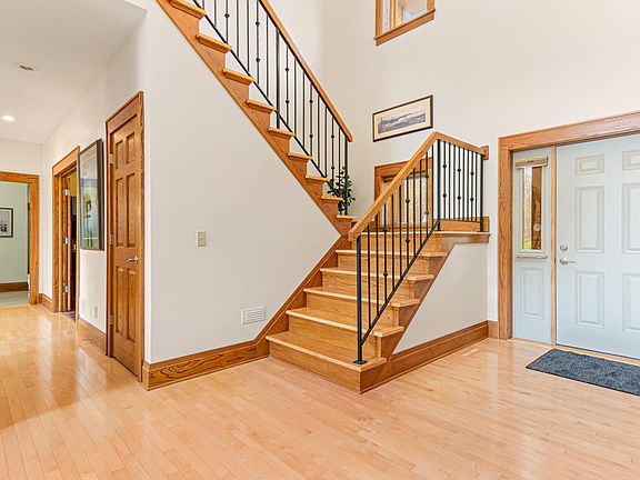 Welcome to your dream lakefront retreat! This stunning home on 11 acres offers an idyllic blend of modern luxury and natural beauty. This property boasts a perfect balance of comfort, style, and functionality. As you step inside, you'll immediately notice the abundance of natural light streaming throughout. The open kitchen concept, complete with a spacious dining area and eat-in island, provides an ideal space for entertaining family and friends. The primary bedroom is a true oasis, featuring an ensuite bathroom with a jet tub and a walk-in shower. Maple hardwood floors on the main level along with a cozy fireplace. Step outside onto the maintenance free deck or screened-in porch, where you can enjoy your morning coffee or evening meals while soaking in the tranquil beauty of the lake. The 333 feet of lakeshore provides direct access to the water, allowing you to partake in water activities at your leisure. Do not miss this one... see supplements for more details.