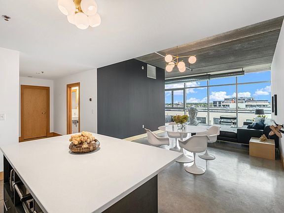 Experience the epitome of urban sophistication in this contemporary one bedroom plus den loft situated in the Bookmen Stacks of the North Loop. With its northwestern orientation, this loft captures breathtaking views of the sunset. The open-concept design showcases soaring ceilings concrete floors, and an abundance of natural light pouring through oversized windows. The gourmet kitchen boasts stainless steel appliances, kitchen island and more! The tranquil bedroom offers a spacious closet. Immerse yourself in the vibrant energy of the North Loop, surrounded by charming cafes, best restaurants in town, Twins Stadium and more! This loft encapsulates the essence of contemporary city living in the heart of North Loop.