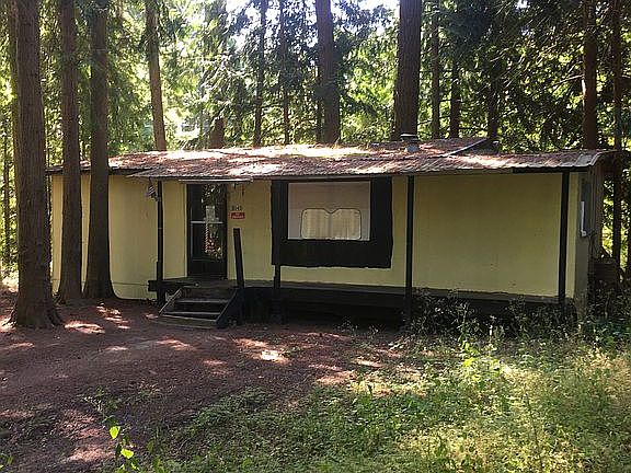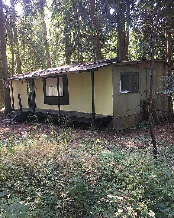 Fixer-upper located on a wooded lot, with some very tall second growth fir trees on it. Turn-key, but needs work. Owner will carry a contract ..Suggest .20% down and balance to be paid off at 6% per annum on a 12 year contract. To save $ for both parties, Seller has listed this as "For Sale By Owner". If you wish to have your own agent, that's OK, but seller will not pay for your agent or broker. Any reasonable offer will be considered. call or text me anytime at 360 390 8644 This is a 2-bedroom (stick-built) bungalow, with simple layout: the bedrooms open into the living-room area , which is in the front, and the kitchen and bathroom are adjacent, with the other 2 rooms, a laundry and a spare room to the far side.