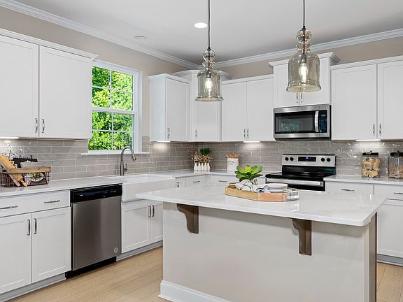Discover the perfect blend of luxury and tranquility at Honeycutt Hills - just minutes from Downtown Angier and the Wake County line. Enjoy peaceful country living while staying close to highways, shopping, dining, and recreation. Step into the Drayton and feel instantly at home. The foyer leads to a spacious main-level guest suite with a full bath featuring a ceramic tile shower - ideal for visitors, extended stays, or a private office. The elegant dining room features coffered ceilings, creating a warm setting for gatherings. The open-concept kitchen flows to the breakfast area and living room, filling the space with natural light. Enjoy stainless gas appliances, soft-close cabinetry, quartz countertops, tile backsplash, pendant lighting, a large island, and abundant storage. The living room centers around a gas fireplace, making it a cozy retreat. Step from the breakfast area onto the screened porch overlooking a private, tree-lined yard - a peaceful spot for morning coffee or quiet evenings. Upstairs, the loft provides endless possibilities - media room, gym, playroom, or creative space. The primary suite impresses with a tray ceiling, spa-inspired bath, 5-ft ceramic tile shower with bench, dual vanities, and a truly expansive closet. Two additional oversized bedrooms with generous closets and a convenient laundry room complete the second level. A three-car garage offers exceptional space for vehicles, storage, tools, or hobbies. Set in a quiet neighborhood with countrysi