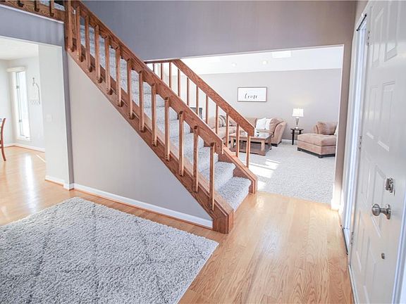 Gorgeous Colonial nestled on a quiet street. You will be greeted at the front door by beautiful hardwood floors & a massive 2 story foyer. A large living room with floor to ceiling brick fireplace & cathedral ceiling is drenched in natural light! An updated eat in kitchen is every chef's dream. You will not be disappointed by the gleaming quartz counters, wonderful white cabinets, an enormous double door pantry, & island with breakfast bar. Plus a formal dining room ready for all your entertaining needs! Extra living space can be found in the full finished basement! Endless possibilities here! Upstairs there are 3 beds and 2 full baths including a private master with tile shower and walk in closet! Just outside the French doors you will fall in love with the deck that overlooks the peaceful and shaded backyard. All of this wouldn't be complete without a high efficiency furnace & central air! Come fall in love with this show stopper today! DELAYED NEGOTIATIONS until SUNDAY 3/1 at 6 pm!