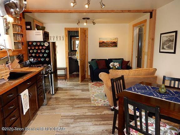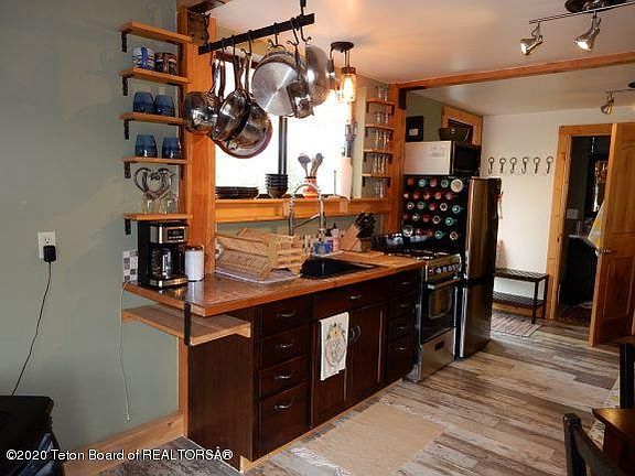 VERY UNIQUE and remarkable property less than 2 miles from downtown Driggs. Close to 4 acres without CC&Rs! Adorable small home and garage/shop on slightly less than 2 acres with the adjacent 2 acre lot included. Beautifully remodeled with Artisan quality and exquisite custom hand-forged ironwork gems throughout the space. Home is turn-key and ready for immediate occupancy. Gorgeous native landscaping with sage brush and huge mature Cottonwoods on large portions of both parcels. Zoning may allow for a lot split. This is a MUST SEE property that will not last...