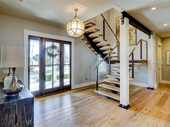 Low country style home in Belfair with architectural details around every corner. Great front porch looking to marsh. Custom floating stairway you notice immediately. Open concept, first floor master, office nook, wet bar and much more. Screen porch has a wood burning fireplace, vaulted ceiling as well as motorized screens open to patio. The chef's kitchen has all the latest high end appliances and plenty of space to share with friends. Two bedrooms and media room plus two baths complete the upstairs. The garage has room and wired for lift. Custom Audio - Nuvo Concerto throughout the home/garage/screen porch. Circa lighting and fans.