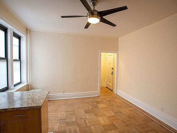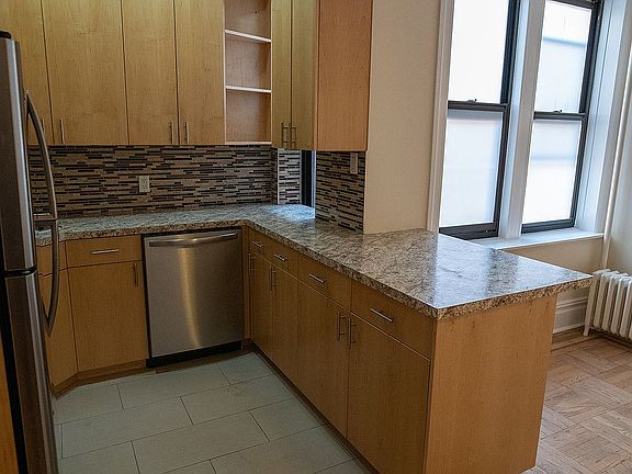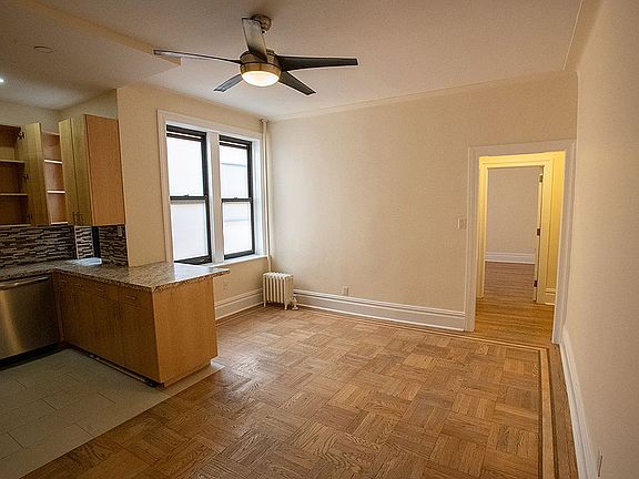 Welcome to this fully renovated and freshly painted one bedroom cooperative located on a high floor in an elevator building. The apartment features an open floor plan with a tastefully designed kitchen that opens to your living room equipped with a ceiling fan and 3 large windows allowing for great light and air flow. Windowed kitchen has all the essentials a cook would need featuring abundant cabinet space accented with granite countertops, ceramic tile flooring and stainless-steel appliances including a refrigerator, microwave, stove, and dishwasher. Bedroom features a ceiling fan and dual cedar closets. Beautiful parquet flooring throughout. A cedar hall linen closet is conveniently located directly outside the bathroom. Finishing off this space is an alluringly designed white subway tiled bathroom, equipped with a window featuring a full-length mirror along with a glass sliding door shower enclosure.