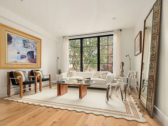 This exquisite home features oversized windows that provide copious southern and northern light and a lovely views onto the tree-lined streets and the Downtown Brooklyn skyline. Also appreciate towering ceilings, and wide oak plank flooring. Unique highlights that are sure to enchant include a dramatic powder room adorned in Nero Marquina black marble and a massive walk-in pantry / mudroom. Storage and convenience abounds with the residence thanks to its generously sized closets. There is also an oversized LG washer / dryer, and a large dedicated basement storage area.
