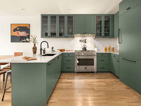Upon entering the home, through private key locked elevator, you are welcomed into the striking gallery entrance that will surely captivate any art lover. From there, the unit dramatically opens to the sweeping great room featuring a spacious living room, dining area, and chef's kitchen. Every unit at 345 Bergen Street was thoughtfully designed for seamless entertaining. The living room effortlessly flows into the chic and functional chef's kitchen - complete with an eat-in peninsula, 5-burner Bertazzoni gas stove, and coordinating premium appliance package. It's a space where style meets practicality - perfect for hosting and everyday living alike.