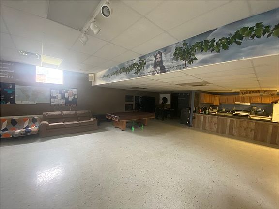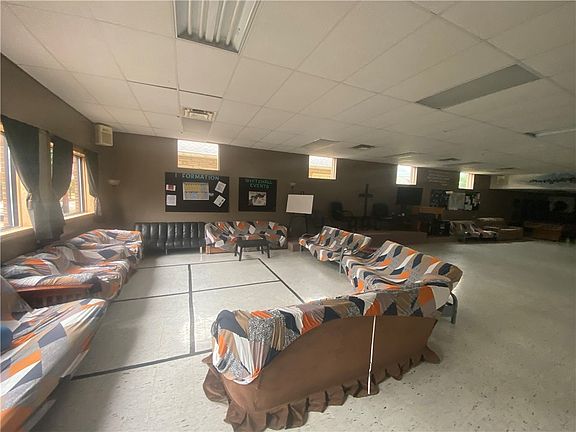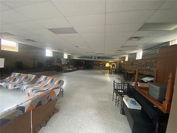 So many possibilities. This building is currently used as a church youth center and the church office. The first floor is a very large open space for gathering. The full kitchen looks out onto the open space, and the 2 partial baths are beside the kitchen. There is a wide staircase leading to the second floor that has an open office, a private office and storage rooms. The property is currently zoned Residenial so this would make an awesome single family home.