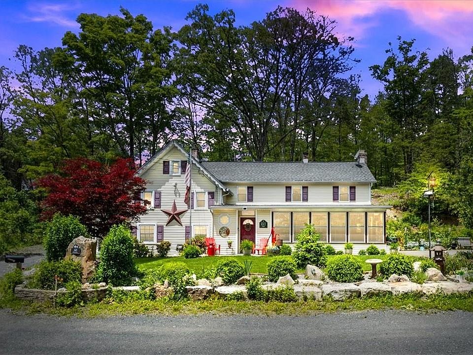 Get ready to fall in love with charm and character - they just don't build 'em like this anymore! Don't let the age fool you though as this unique farmhouse has enjoyed numerous upgrades and improvements throughout the years. Extensive landscaping welcomes you and leads you inside to an inviting three season porch and a light filled interior boasting nearly 2300 square feet of living space. Authentic features like wood beams and solid wood doors blend beautifully with modern amenities including a thought filled kitchen renovation with gray stainless steel appliances and gas stove, tiled backsplash, farmhouse sink, an abundance of cabinets and even a coffee bar. Enjoy entertaining in formal living room and dining room with a pass through to kitchen. Find flexibility in den with fireplace and built in cabinetry for an efficient workspace. Convenient mud room/laundry room could be repurposed for walk in pantry or potting room - or all of the above! Discover the primary suite wing upstairs with full bath with double sinks, three closets and private porch for stargazing. Two spacious bedrooms and renovated hall bath with Safe Step tub/shower round out the second floor. Relax and unwind in the newer Sundance hot tub privately situated on the 15' X40' deck complete with pergola for shade. Added bonus is the whole house Generac 18KW generator and the must see 23' X24' metal garage with electric and heat making it ideal for tradesperson, hobbyist or car enthusiast. Set back from the home is "shed row" where you will find a 16' X24' Quonset garage and two storage sheds with lean-to-storage areas for all your tools and toys. Home sits on 2.8 acres with plenty of room to roam. Country roads will take you home to a peaceful setting in the Pine Bush school district offering privacy without isolation in a location that is just minutes to quaint Main Street for shopping, restaurants, festivals, parks and so much more. Additional Information: Amenities:Pedestal Sink,Storage,HeatingFuel:Oil Above Ground,ParkingFeatures:2 Car Detached,