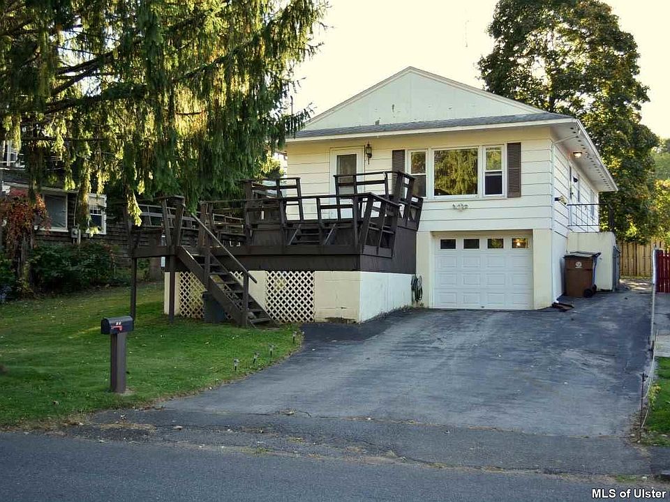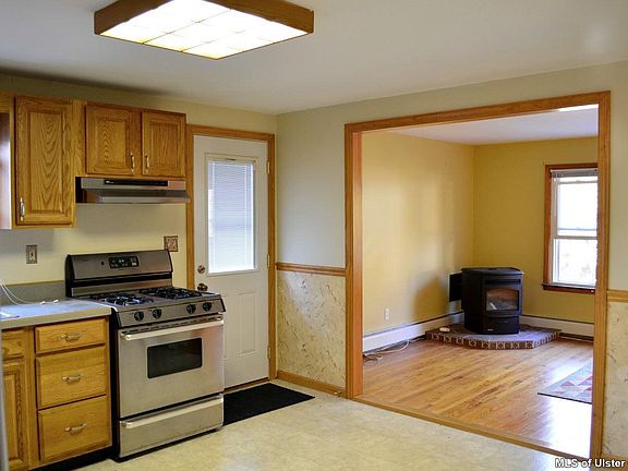 Great home with 1,000 sq ft main level featuring 3 bedrooms, 1 bath, eat-in kitchen and spacious living room with pellet stove and deck and additional 500 sq ft of finished space with half bath on above grade lower level. Gleaming hardwood floors on living and all bedrooms and carpet on lower level. Two zone heat, newer kitchen appliances and replacement windows. Fenced back yard with shed. In an inviting and leafy neighborhood, conveniently located between historic Kingston and all conveniences and services.