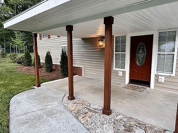 Beautifully remodeled 3-bedroom, 2-full bath residence that sits on nearly an acre of land. The home is situated in a prime location a few miles off I-85, with easy access to Charlotte, Lexington, Kannapolis, The Triad and more. No detail was overlooked in this home's transformation. More than just pretty finishes, the highlights of this home remodel are new wiring and plumbing (both partially replaced), new HVAC, new LVP flooring, refurbished tile flooring, new lighting fixtures throughout, new porch, new porch overhang and posts, new decking, new fencing, siding replaced as needed, new paint throughout, new toilets and mirrors in both bathrooms, new master vanity, new plumbing fixtures, new roof (right side, 2023/left side approx. 10 yrs), vapor barrier installed in crawl space, electric vent installed in crawl space, new floor joists under living room and kitchen, new pex lines on well pump, new window over kitchen sink, new blinds throughout, new stove and new dishwasher. The large windows in the kitchen overlook the back patio and pool area, creating the perfect backdrop for gatherings and everyday enjoyment. Note that the pool needs a new liner and the pump motor needs replacement. Seller will consider cash back at closing to compensate for some of the pool related repairs.