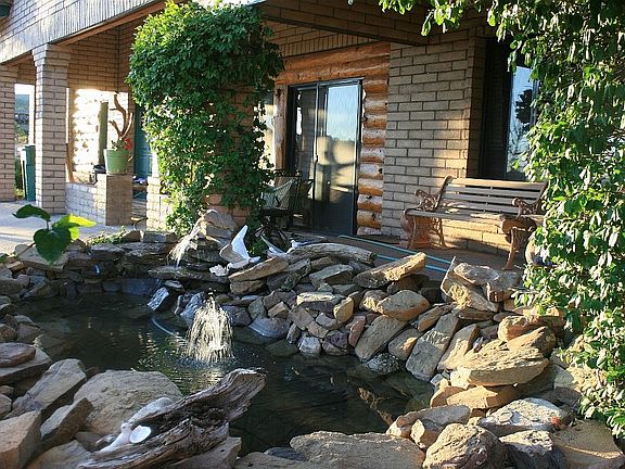 Insulated 8" block construction. 22' vaulted ceilings, 5 zone in-floor heat and zoned air conditioning for ultimate comfort. Gourmet kitchen with Thermador range and stainless steel appliances. Large open floor plan. The oversized attached 2 car garage easily fits 2 crew cab trucks with room to spare. 3 gorgeous covered patios to enjoy outside anytime of the day.