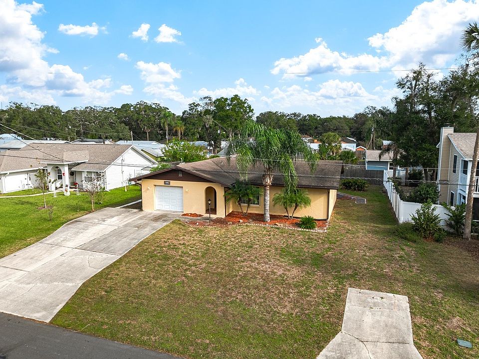 Mid-Century Vibe Home in St. Augustine South! As you enter into a formal living area with an arched wall, connected to the family room with a GORGEOUS brick wood burning fireplace you feel like you are in mid-century home. There are two bedrooms and one bath, large formal dining, and bright kitchen. Outside is a screened porch, partially fenced yard that is lovely landscaped. If you love gardening, there is also a greenhouse in the back yard to grow all your favorite plants and flowers. This home has so much potential. The community has 2 boat ramps, community center, play park with fields, boardwalk along the ICW and no HOA.